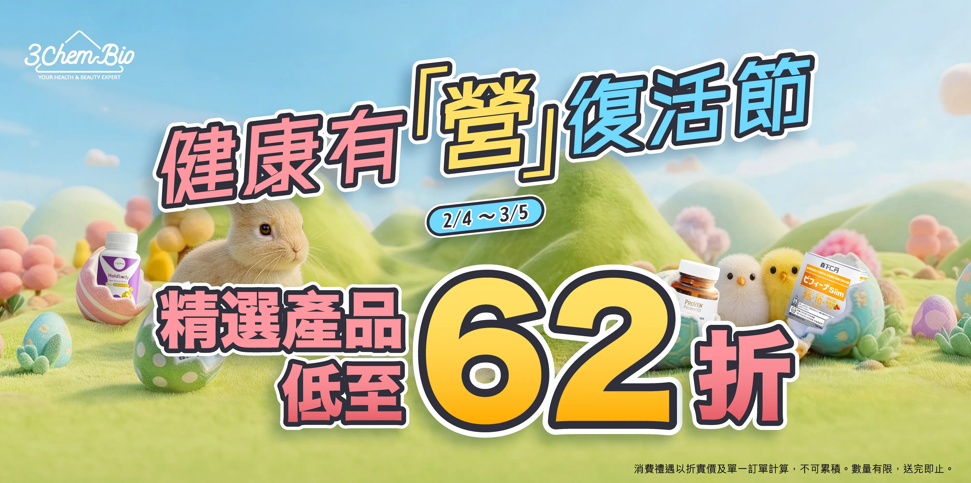 3)優惠期間不適用任何優惠碼,詳情可瀏覽 3Chem Bio官網或到門市向店員查詢。