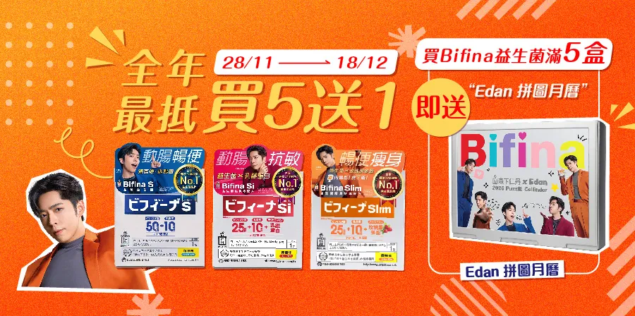 限時即搶📣Edan 拼圖月曆✨Bifina 益生菌買5送1✨