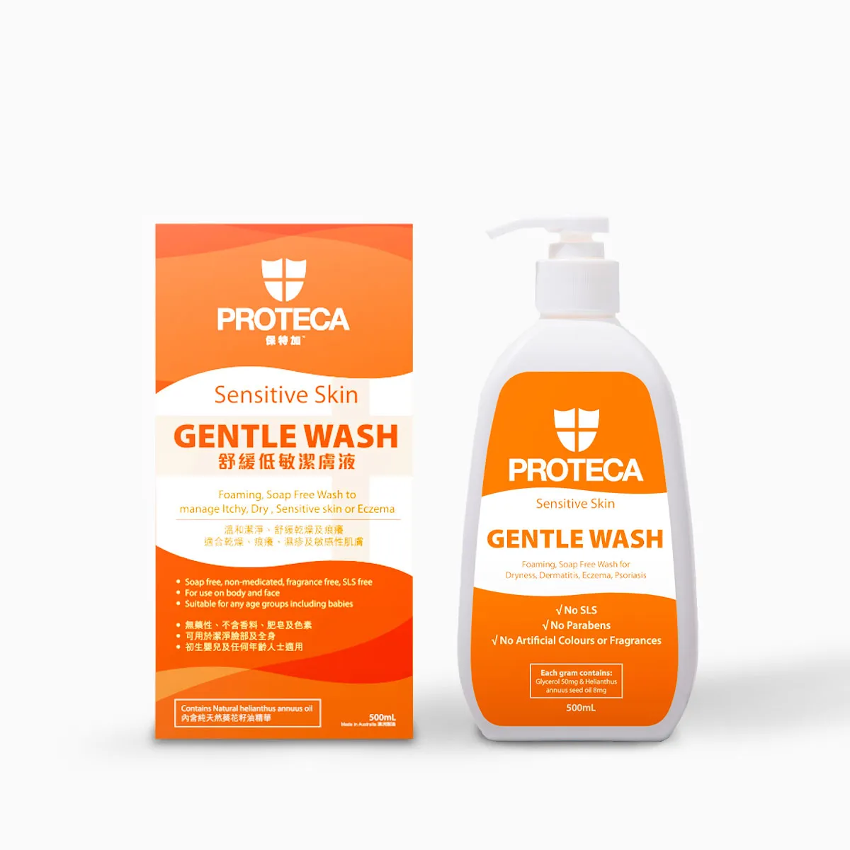 配方由醫院藥劑師研發,低敏配合,成份溫和,針對乾燥及敏感肌膚,絕不含類固醇及西藥成份,以獨特的天然葵花籽油精華為基礎,有助深層潔淨並於皮膚細胞形成保護膜,特別著重無添加刺激性物質概念,確保適用於初生嬰兒之幼嫩肌膚。