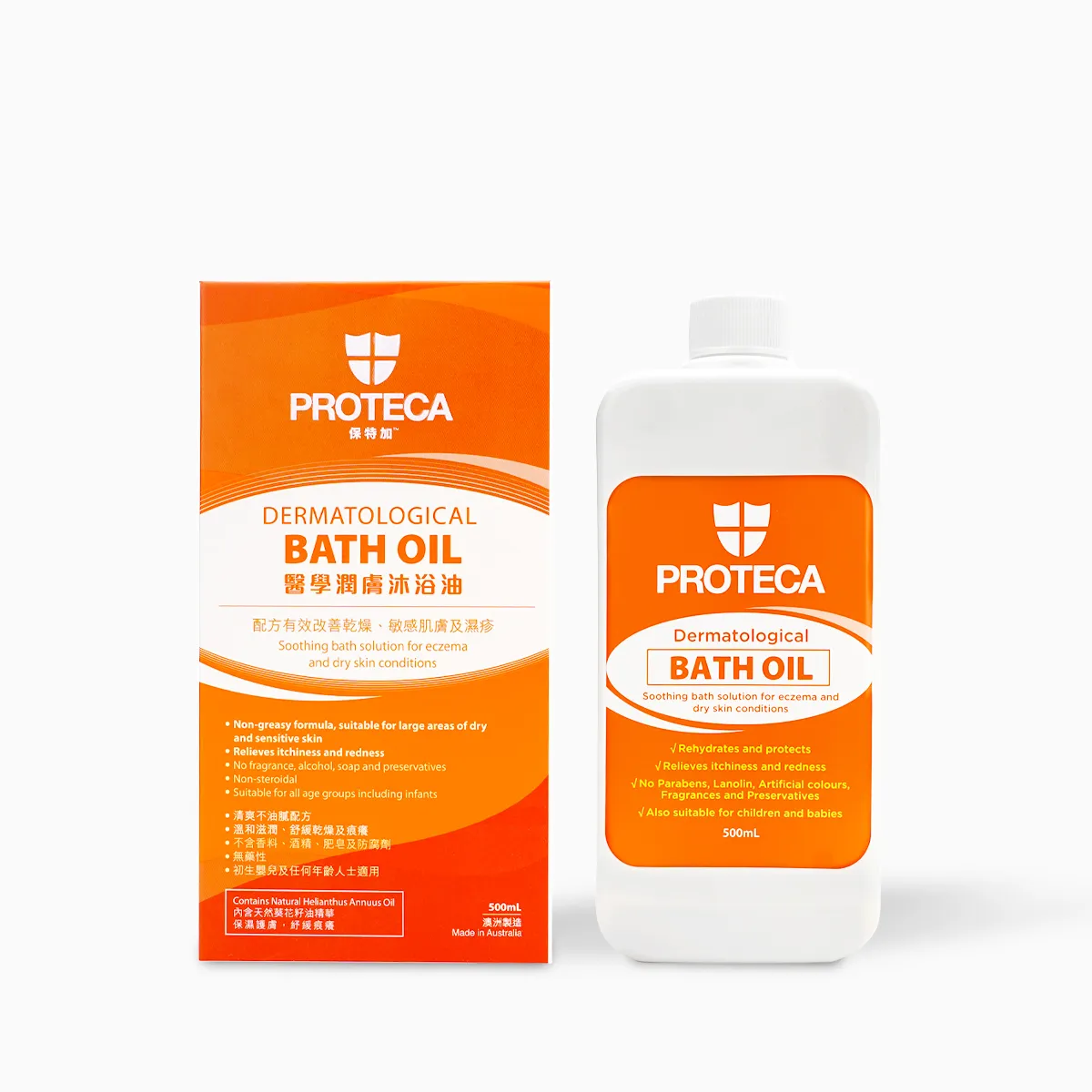 配方由藥劑師研發,有效改善乾燥及敏感肌膚,彷如牛奶浴般,讓你享受浸浴過程。以高濃度醫學潤膚劑為基礎,清爽不油膩配方,於皮膚細胞形成保護膜,幫助改善各種皮膚症狀。沐浴油pH值平衡,屬低刺激性配方,嬰幼兒及長者尤其適用。
