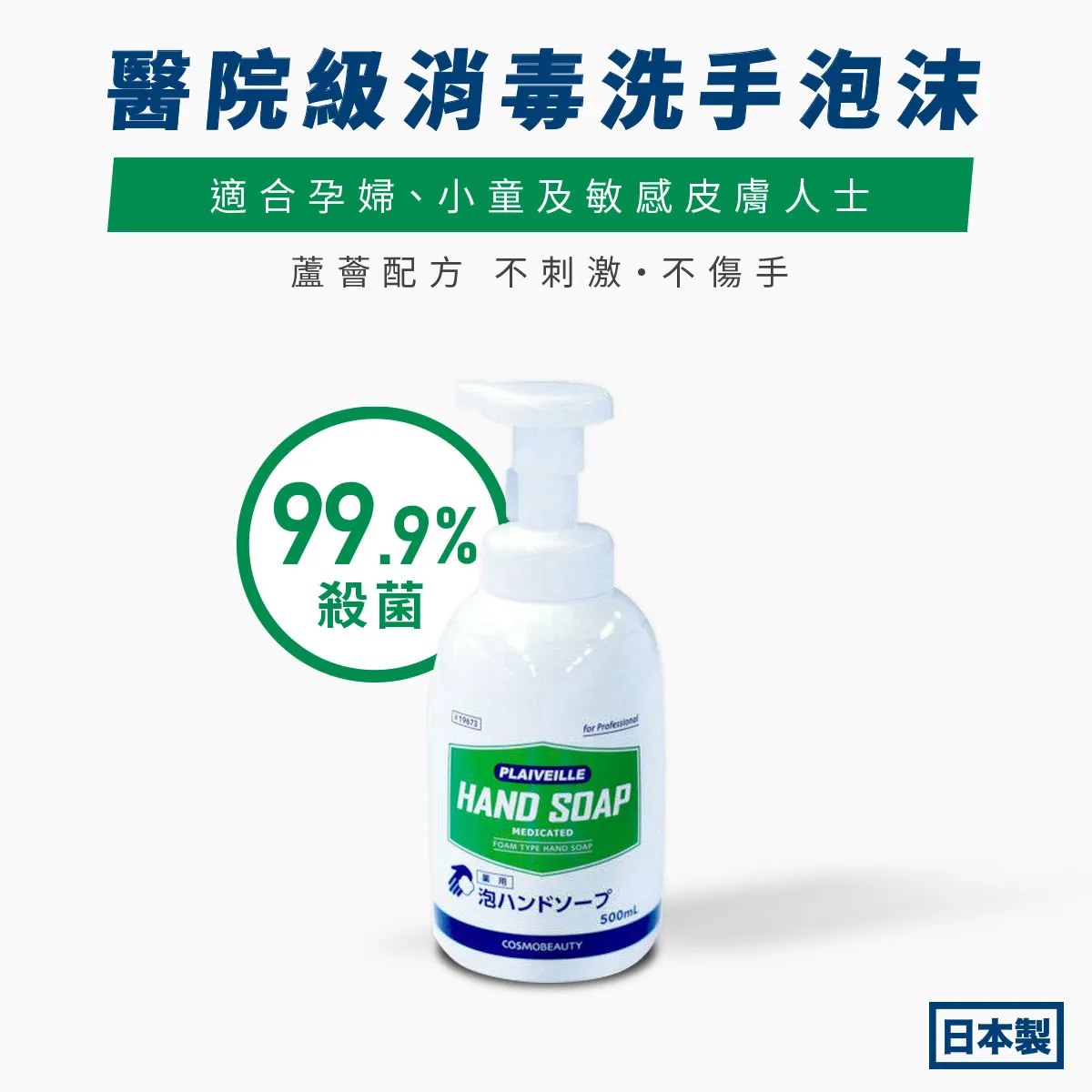 日本專科及牙科醫院選用的消毒洗手泡沫,其殺菌能力極高、而且不刺激,比起傳統成分如Cetypyridium Chloride (CPC), Benzalkonium Chloride 的殺菌抑制能力高, 此外特別針對乾燥及敏感肌膚而設,含棕櫚仁油脂酸 (Palm Kernel Acid) 及蘆薈成份有助滋潤及保濕皮膚,同時有效清除手上細菌及污垢。 以起泡瓶泵頭代替化學起泡劑成份SLS,不用搓手亦有豐盈細緻泡泡,提升全面接觸的範圍,更有效殺滅細菌病毒,比一般洗手液節省搓抹起泡及沖洗時間。嬰兒及孕婦也可安全使用。