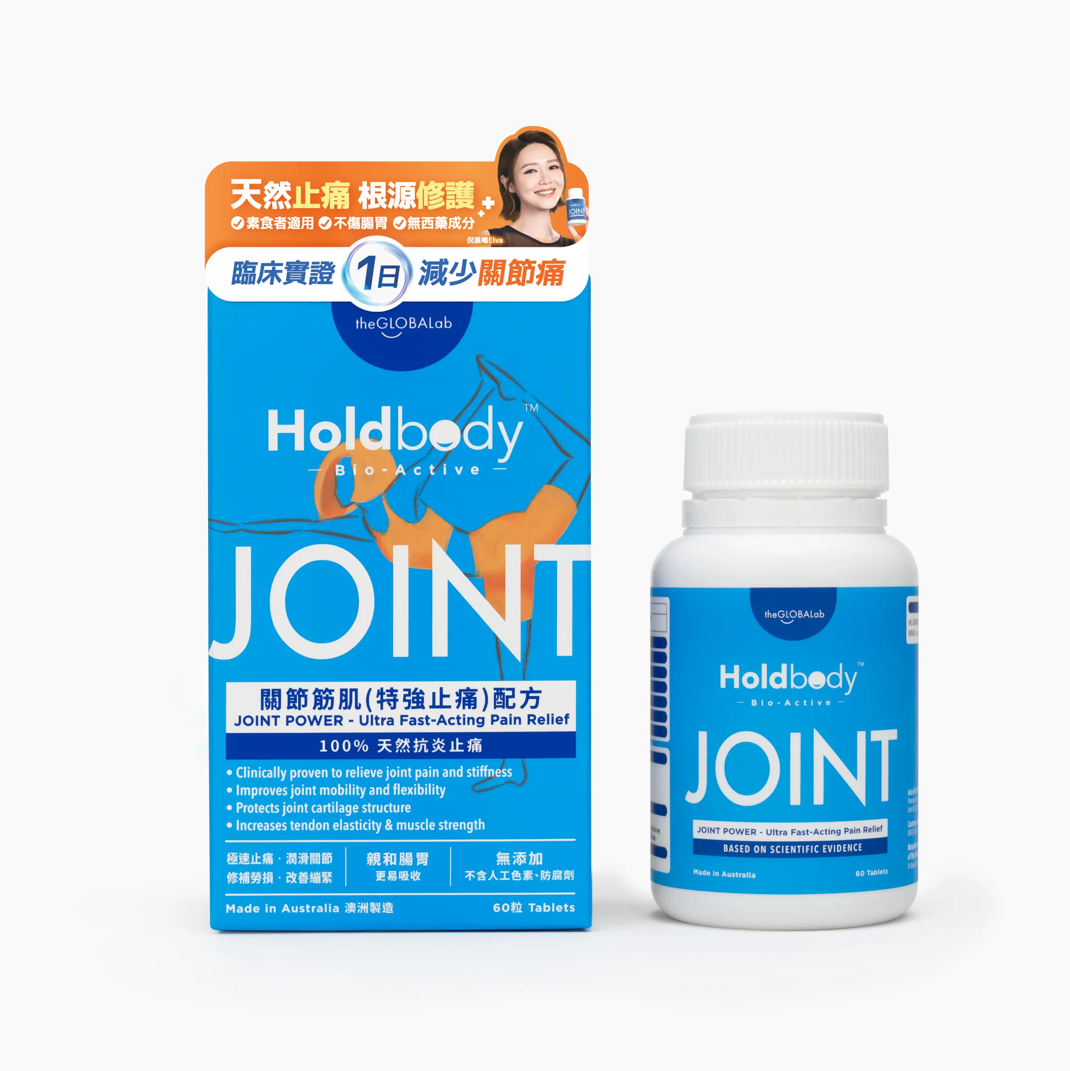 • 透過專利水解蛋殼膜及JOINTGESIC™ 天然抗炎止痛劑,一次過全面修復、強化筋腱及肌肉,全身抗炎止痛